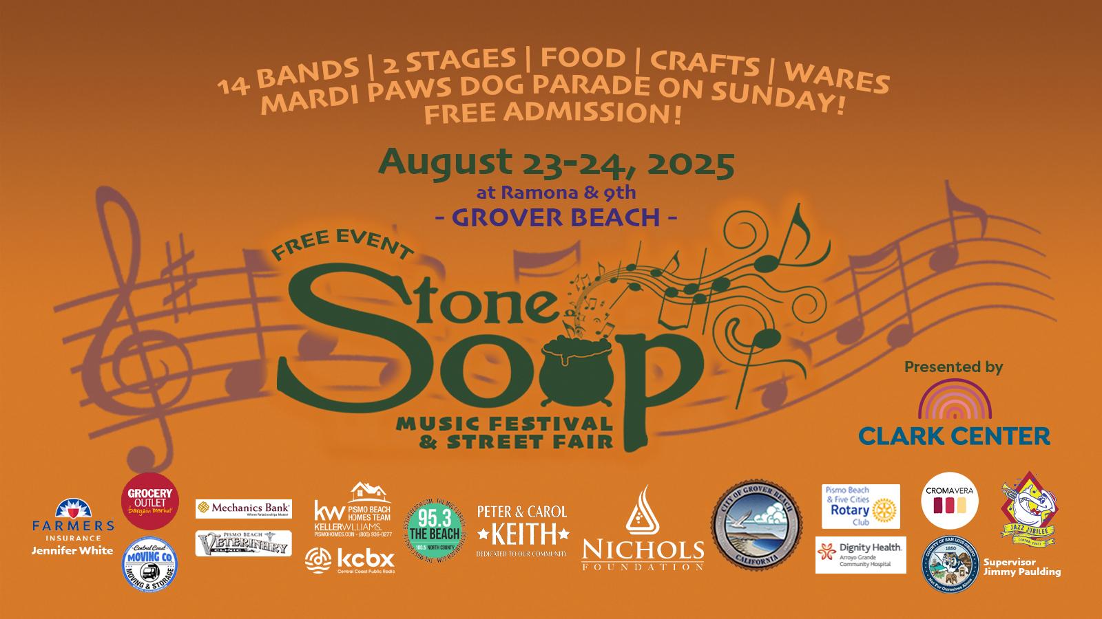 The Stone Soup Music Festival & Street Fair is a community tradition that has thrived for over 30 years in the city of Grover Beach. Each August, the Clark Center gathers staff, volunteers, sponsors, and donors to cook up a stew of great music, food, crafts and wares to share with the community. It's a showcase of amazing talent. Best of all, admission is Free!