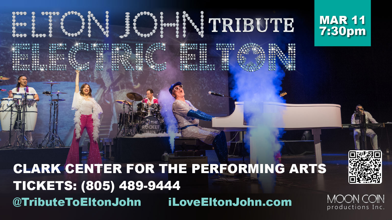 Attention Elton John fans! Moon Coin Productions (Producers of ABBA Tribute “ABRA Cadabra” and Eagles Tribute “Take It To The Limit”) Presents Electric Elton – A Tribute to Elton John from Vancouver performing in Arroyo Grande for the 1st time on March 11, 2026.